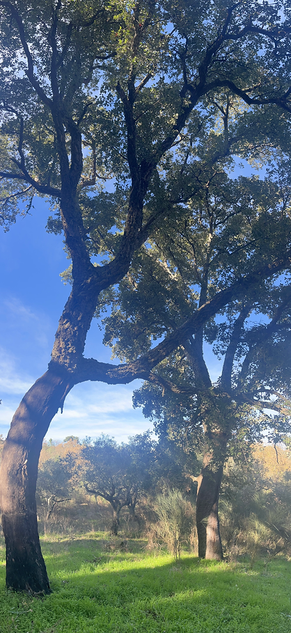 The land is dominated by four different species of native oak: namely, cork oak (quercus suber), holly oak (quercus ilex), holm oak (quercus rotundifolia) and common oak (quercus robur). There are numerous smaller species on site like strawberry trees (arbutus unedo), native shrubs, as well as a variety of aromatic and medicinal plants.